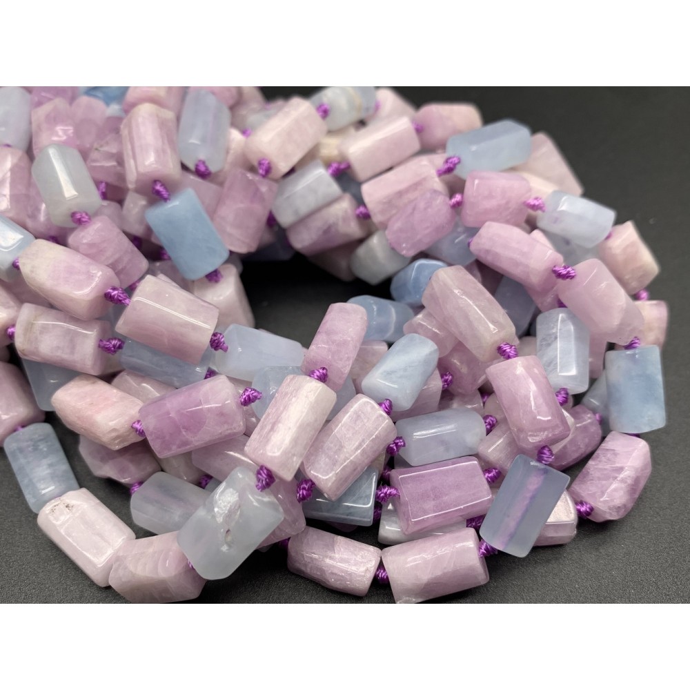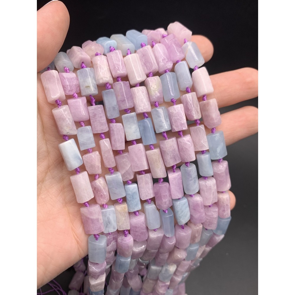 Каменные бусины, Микс (Кунцит, Аквамарин), не обработанный, столбики, 12х7,5 мм, длина нити 38 см