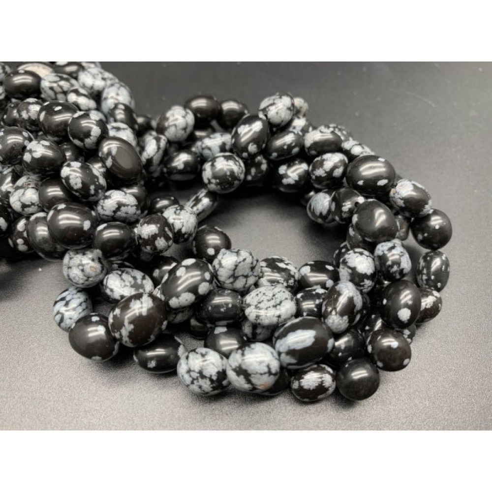 • Каменные бусины, Обсидиан снежный, фриформы, 10х8 мм, длина нити 38 см