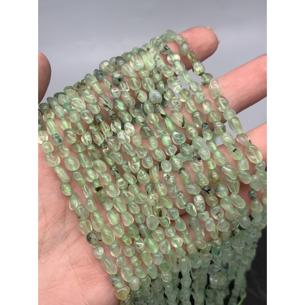 Каменные бусины, Пренит, фриформы, 4х6 мм, длина нити 38 см