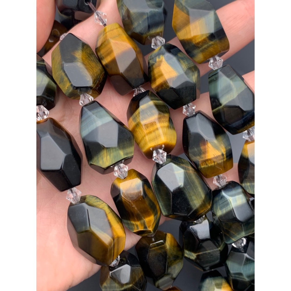 Теги: Каменные бусины, Тигрово-соколиный глаз, огранка, фриформы, размер 24-28 мм, длина нити 38 см, на нити 12 бусин, 19868, Фриформы Свободные формы