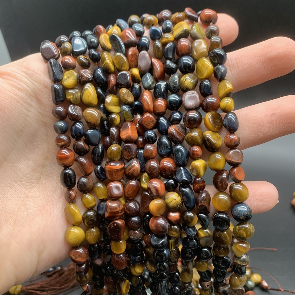 • Каменные бусины, Тигровый Микс, (Бычий, соколиный, тигровый глаз), фриформы, 8х6 мм, длина нити 39 см