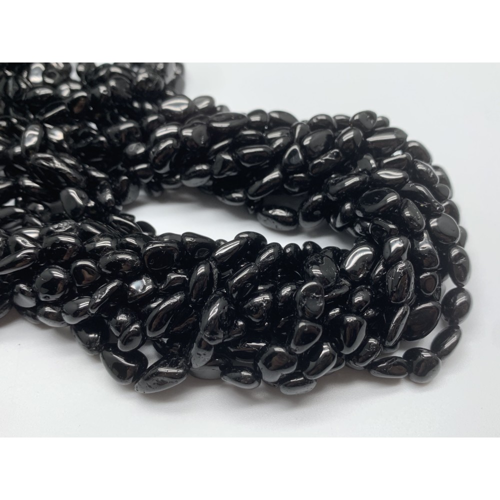 Каменные бусины, Турмалин, черный, фриформы, размер 8х6 мм, нить 38 см