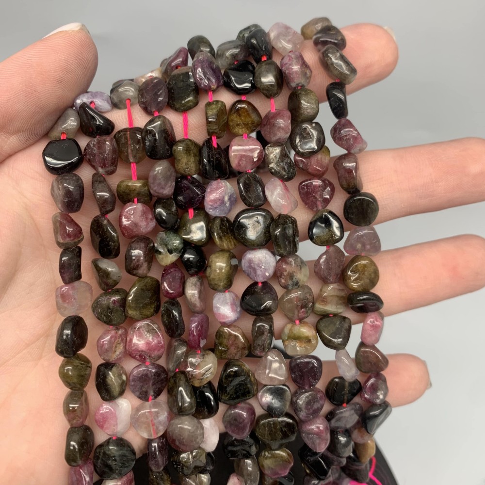 Каменные бусины, Турмалин, фриформы, размер 9х7 мм, длина нити 38 см