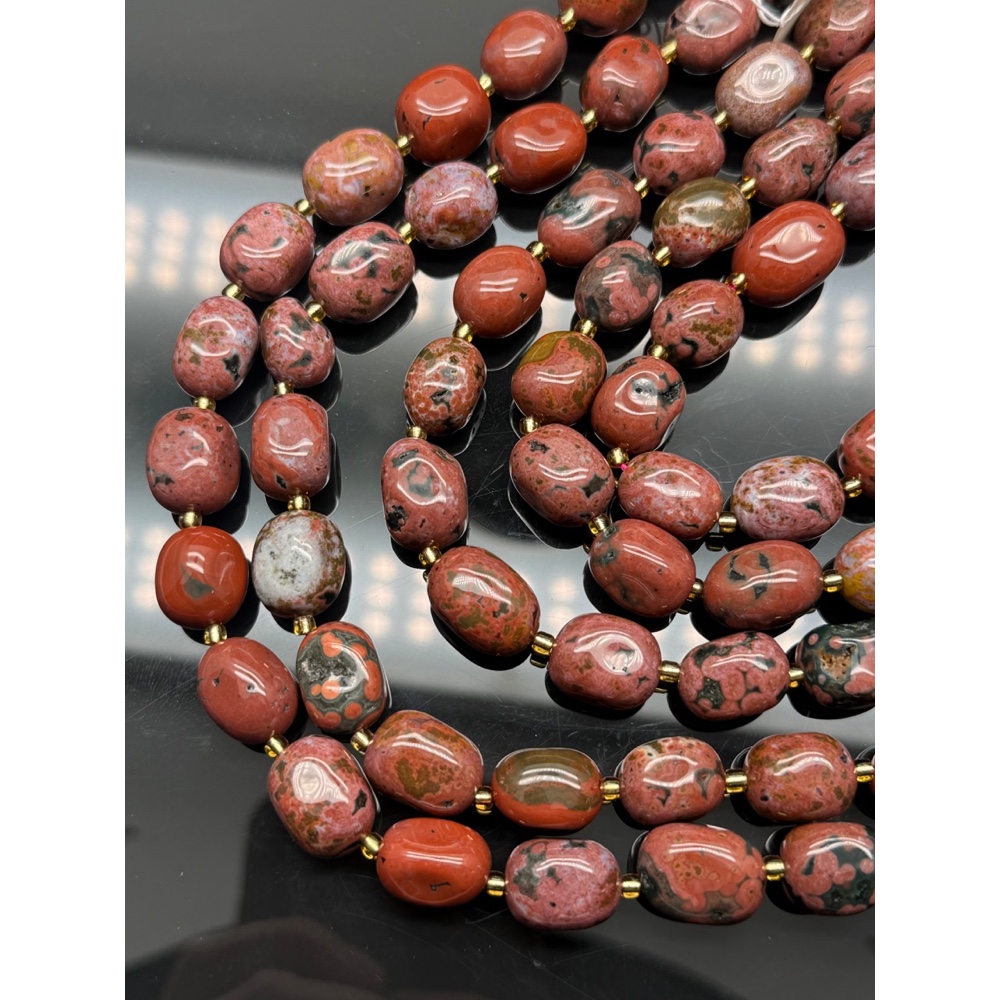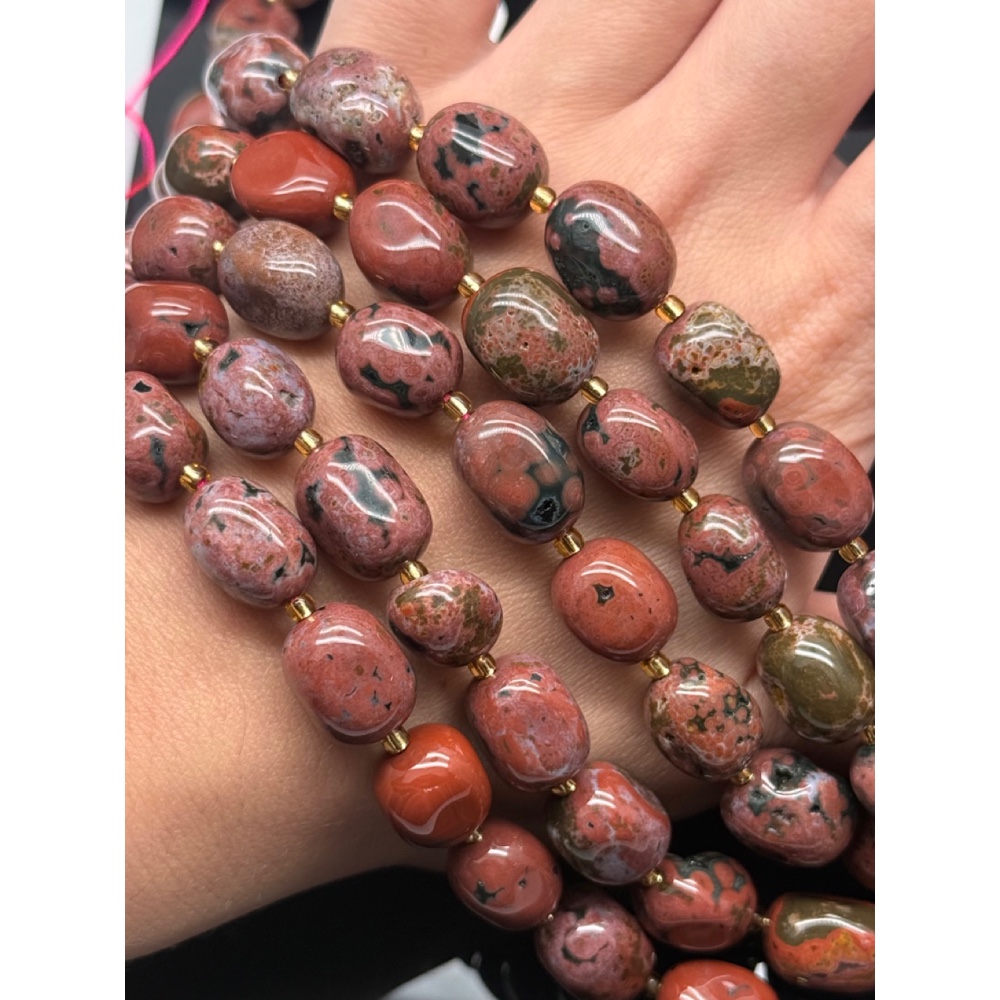Каменные бусины, Яшма красная, фриформы, размер ~14-16 мм, длина нити 39 см