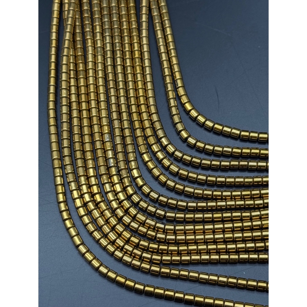 Каменные бусины, Гематит синтетический, цвет золото, трубочки, размер 3х3 мм, нить 40 см