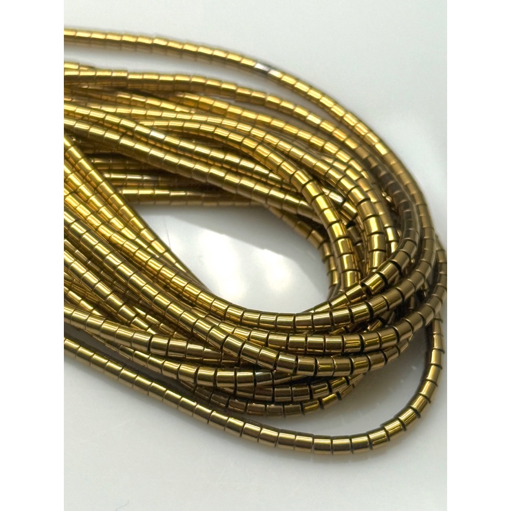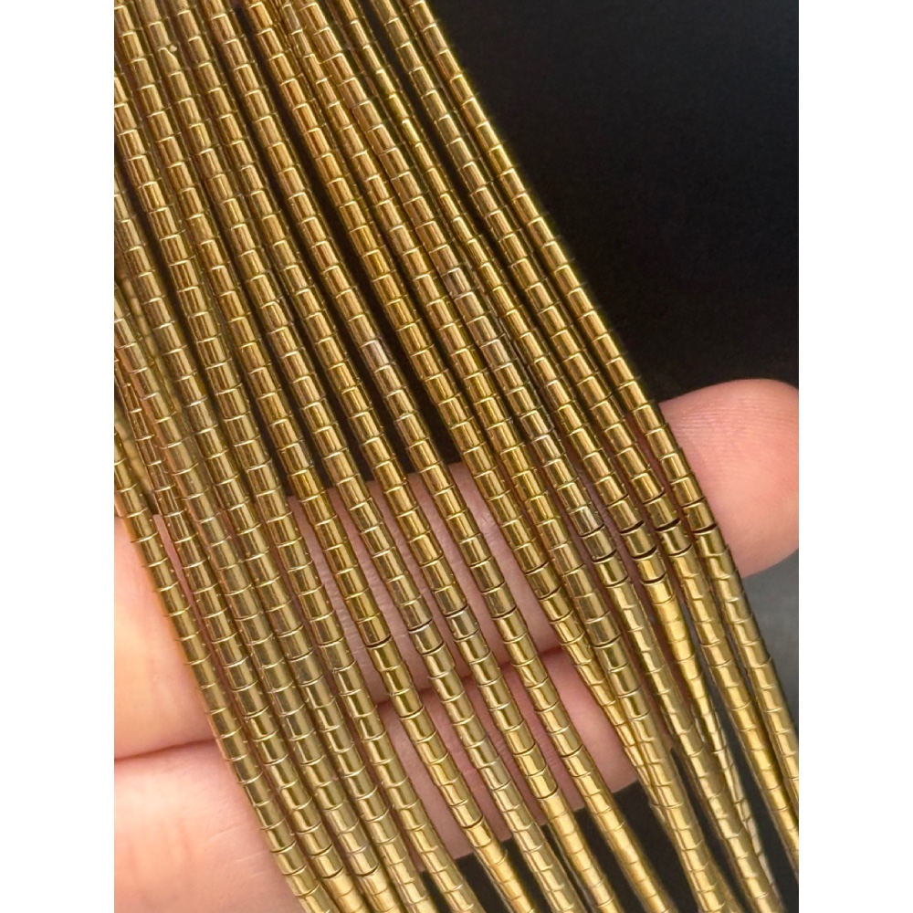 Каменные бусины, Гематит синтетический, цвет золото, трубочки (шайба), размер 2х2 мм, нить 40 см