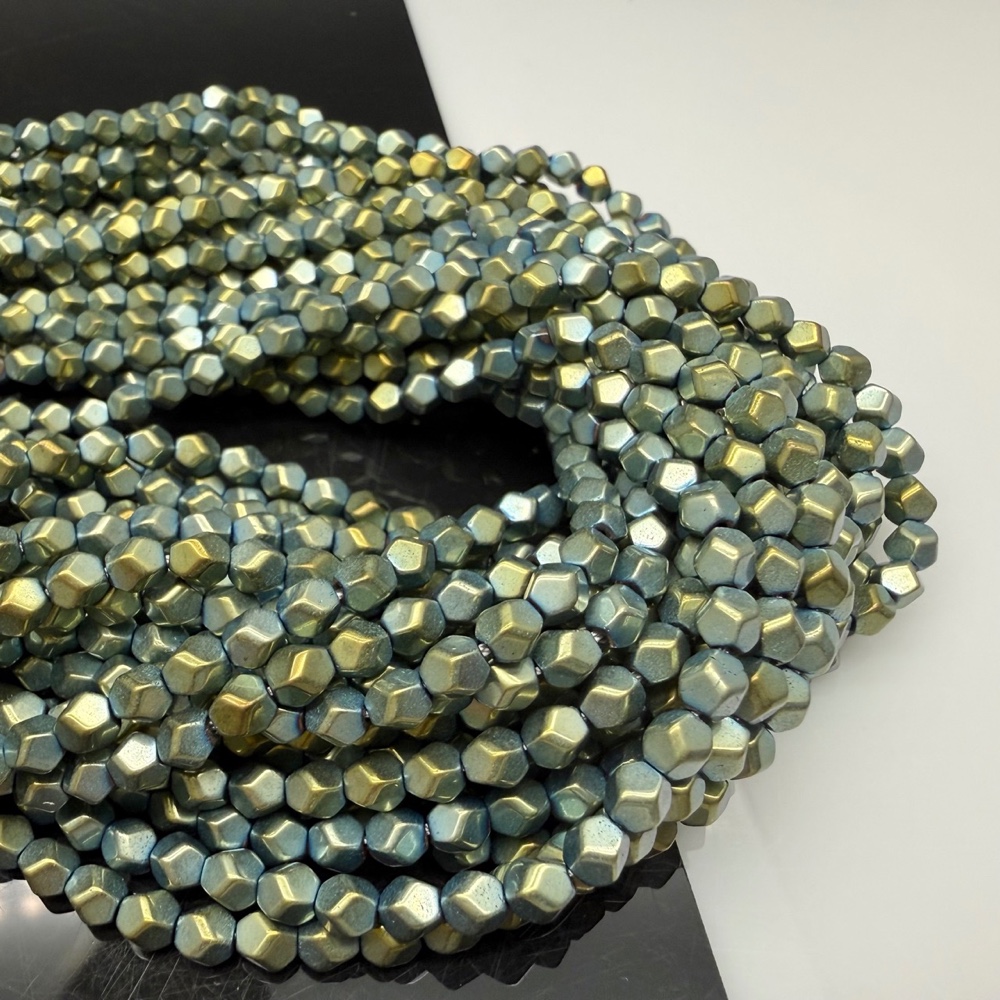 Каменные бусины, Гематит синтетический, голубой, матовый, ромб, размер 4х4 мм, нить 40 см