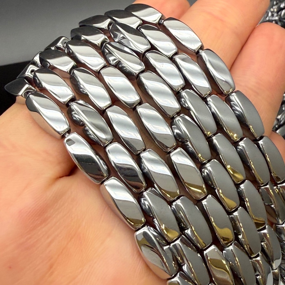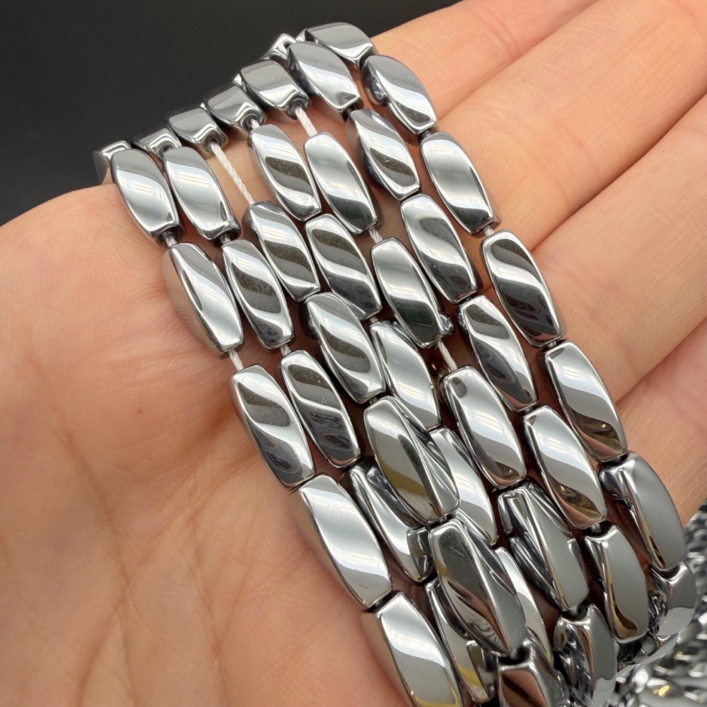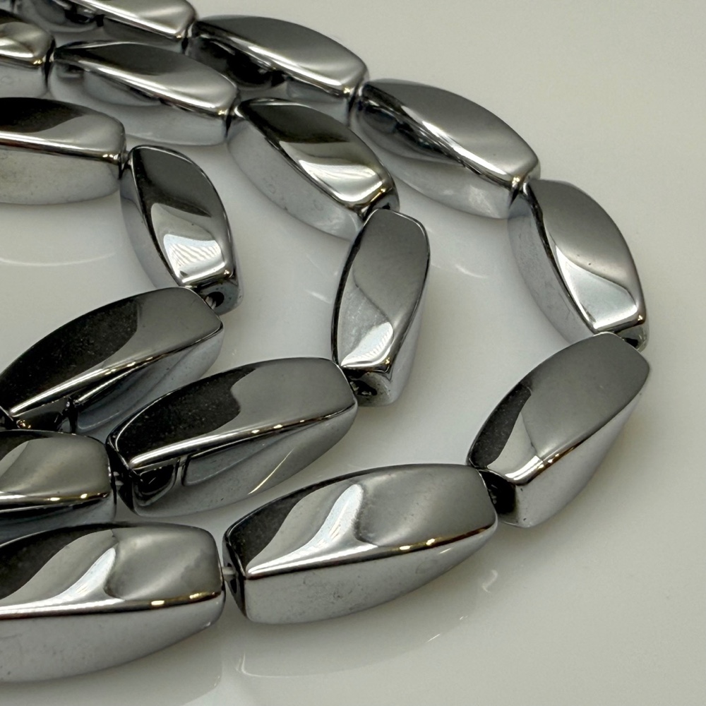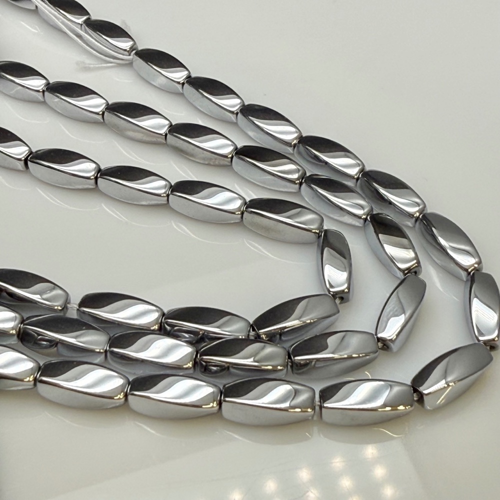 Каменные бусины, Гематит синтетический, серебро, крученый бочонок, размер 5х12 мм, длина нити 38 см