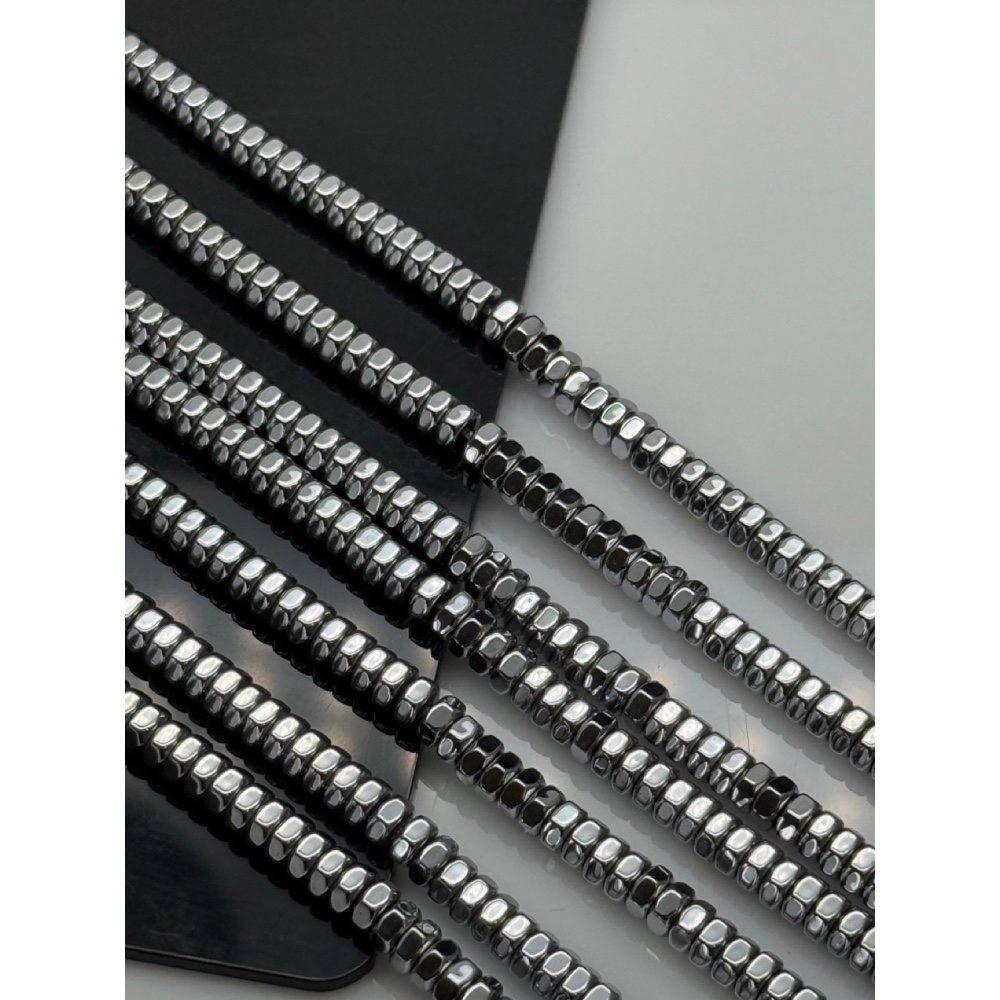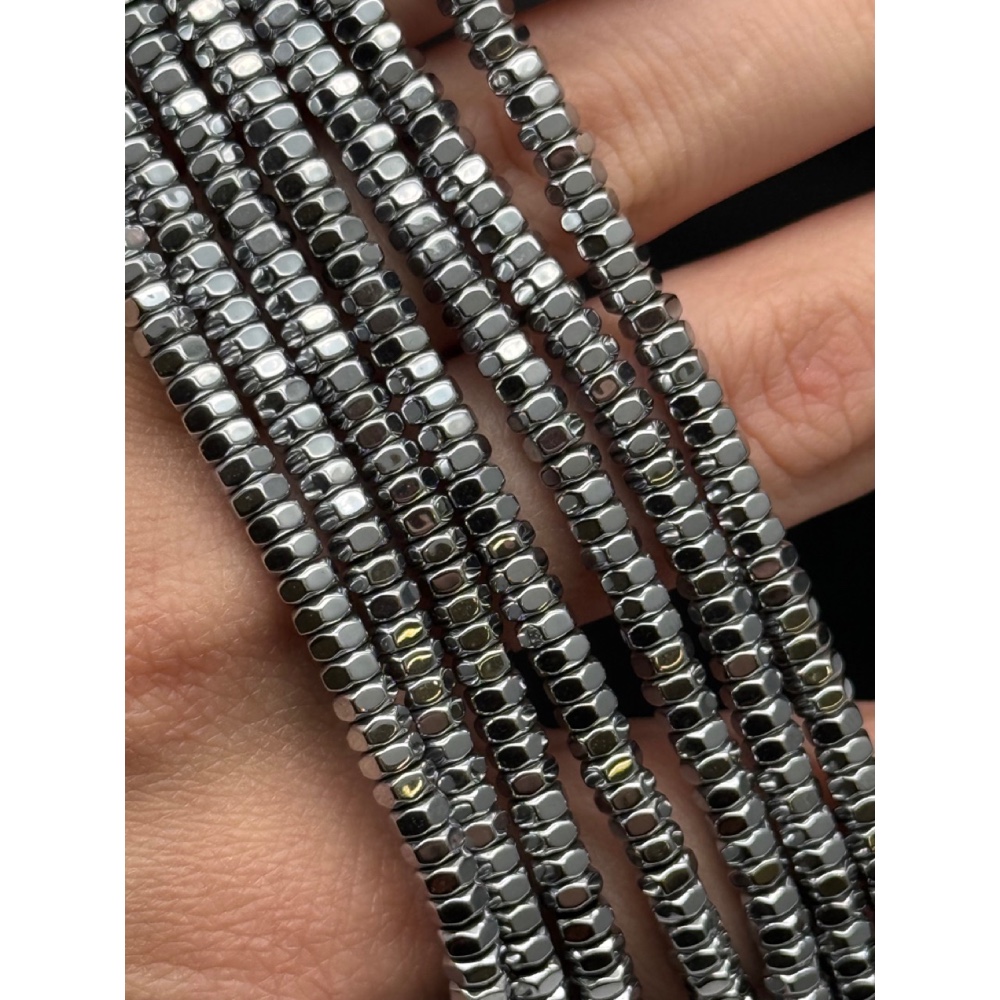 • Каменные бусины, Гематит синтетический, серебро, шайба, размер 4х2 мм, нить 40 см