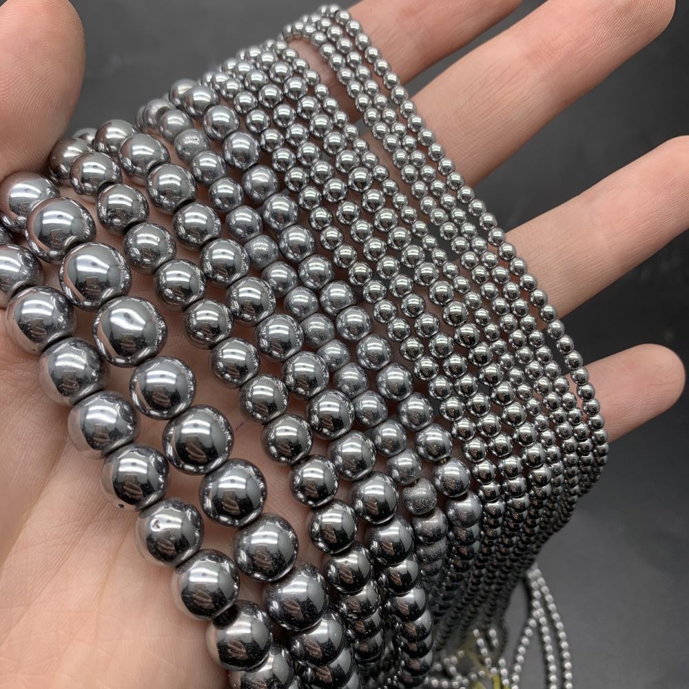 • Каменные бусины, Гематит синтетический, серебро, шарик гладкий, размер 10 мм, нить 39 см
