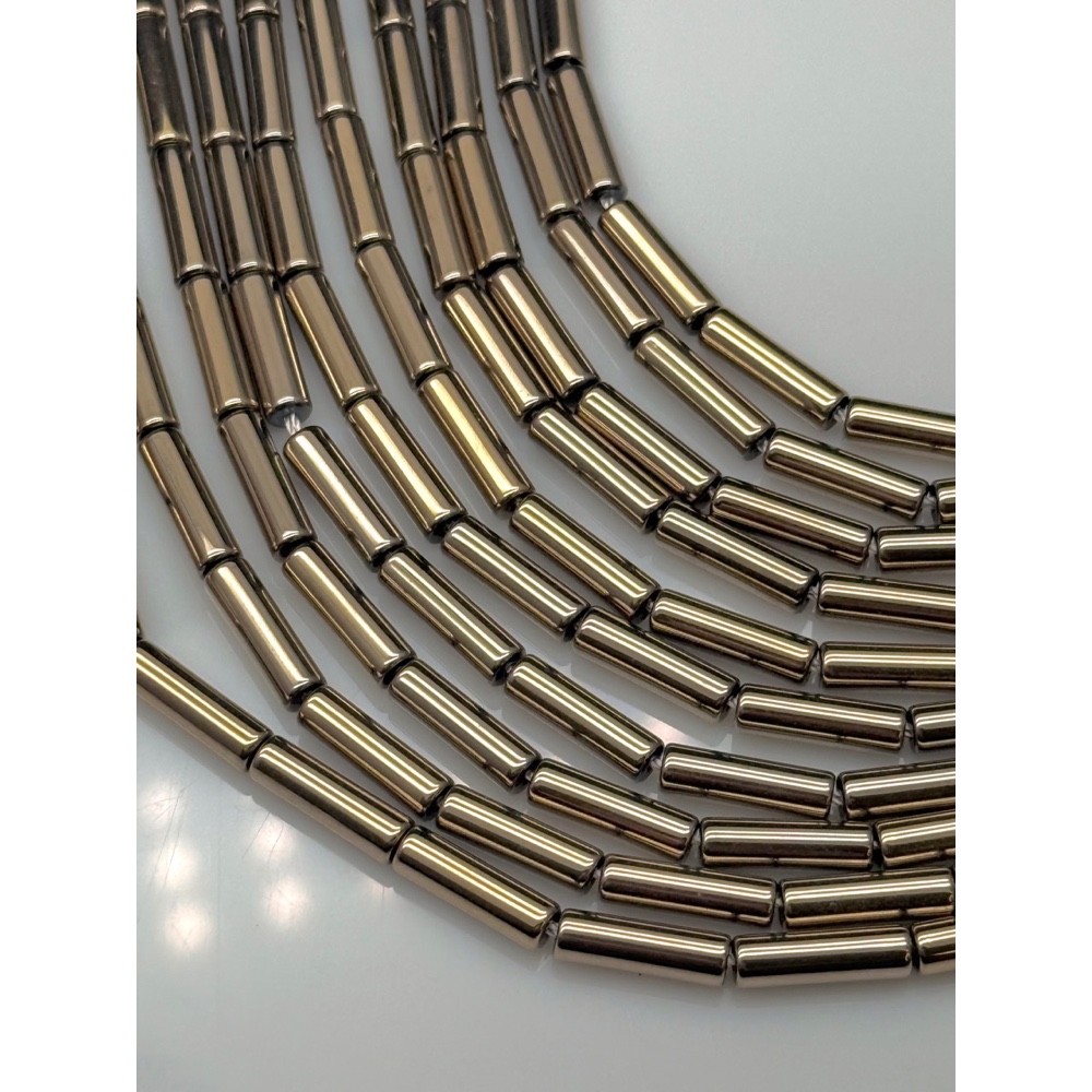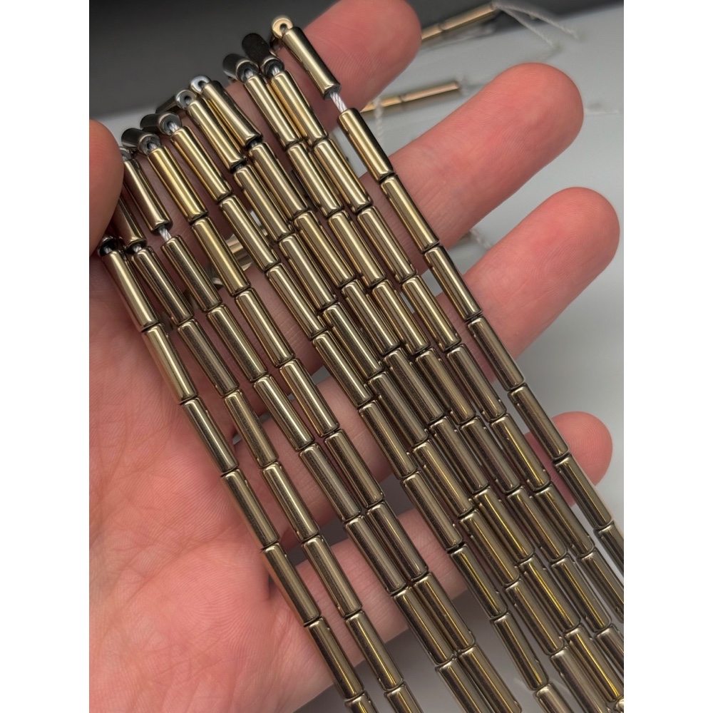 Каменные бусины, Гематит синтетический, светлое золото, трубочки, размер 4х13 мм, нить 40 см