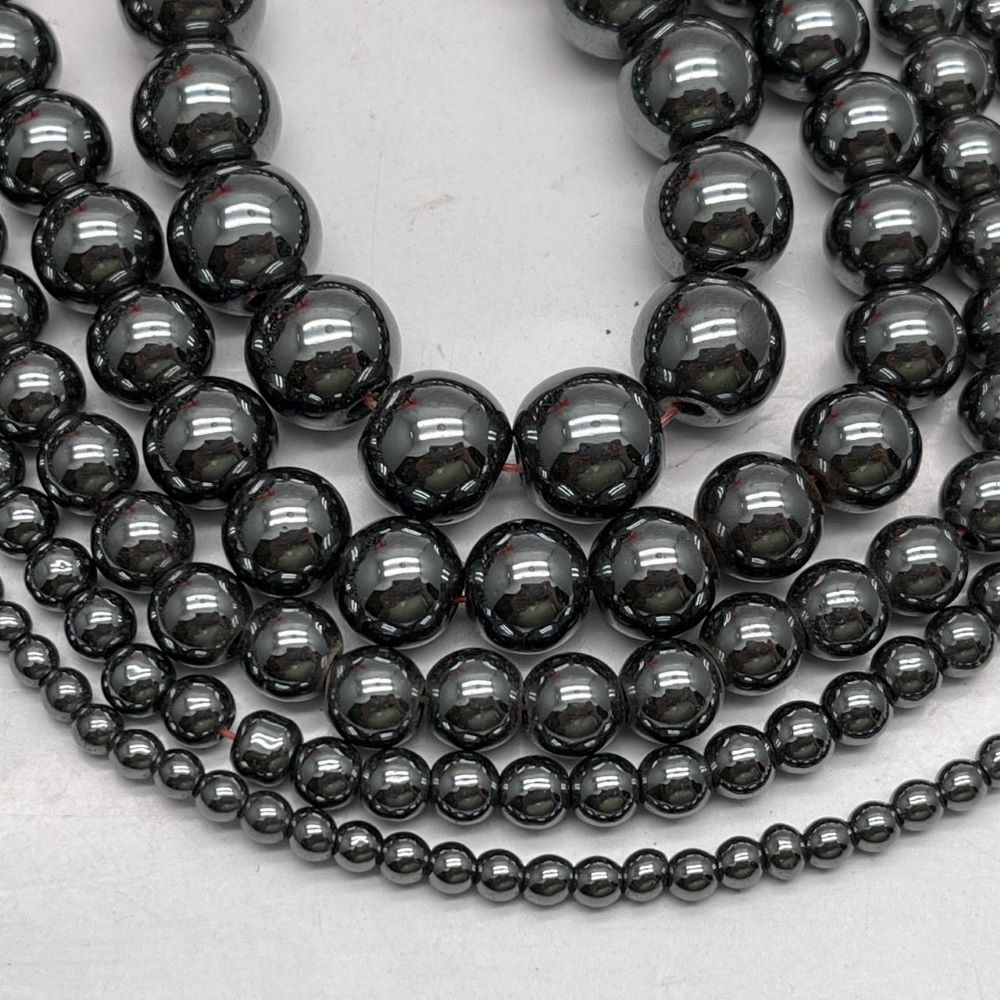 Каменные бусины, Гематит синтетический, темное серебро, шарик гладкий, размер 4 мм, нить 40 см