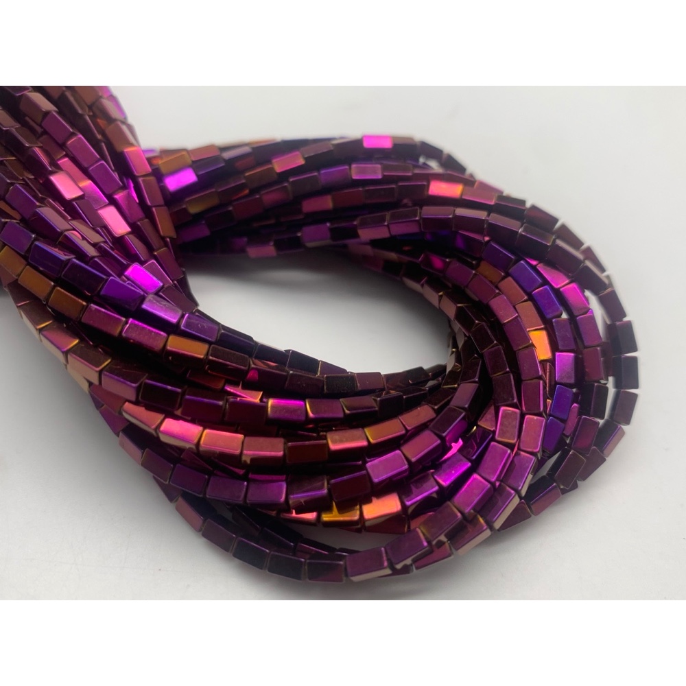 Каменные бусины, Гематит синтетический, цвет фиолетовый, трубочки прямоугольные, размер 4х2 мм, нить 38 см