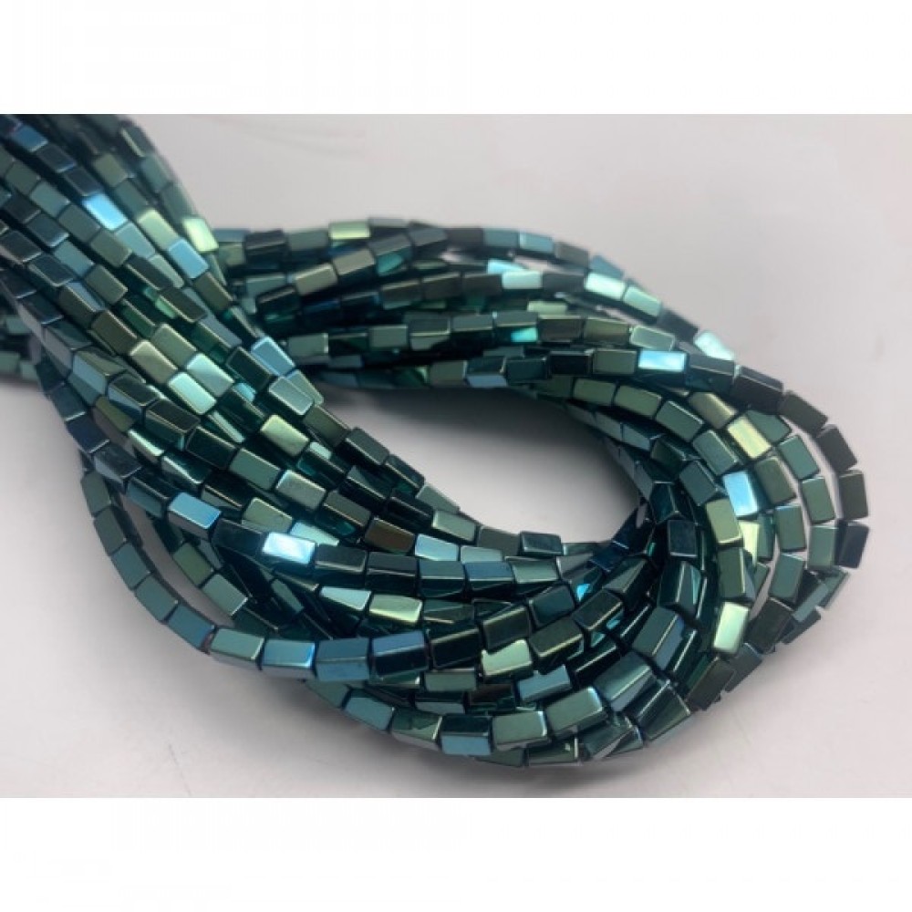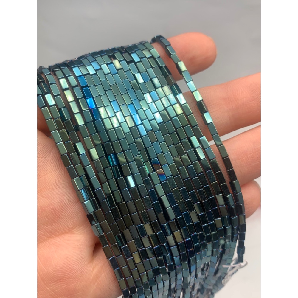 • Каменные бусины, Гематит синтетический, цвет голубой, трубочки прямоугольные, размер 4х2 мм, нить 38 см