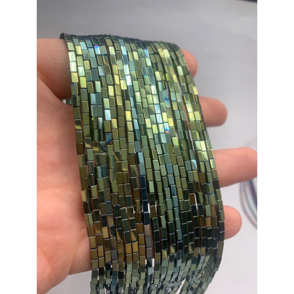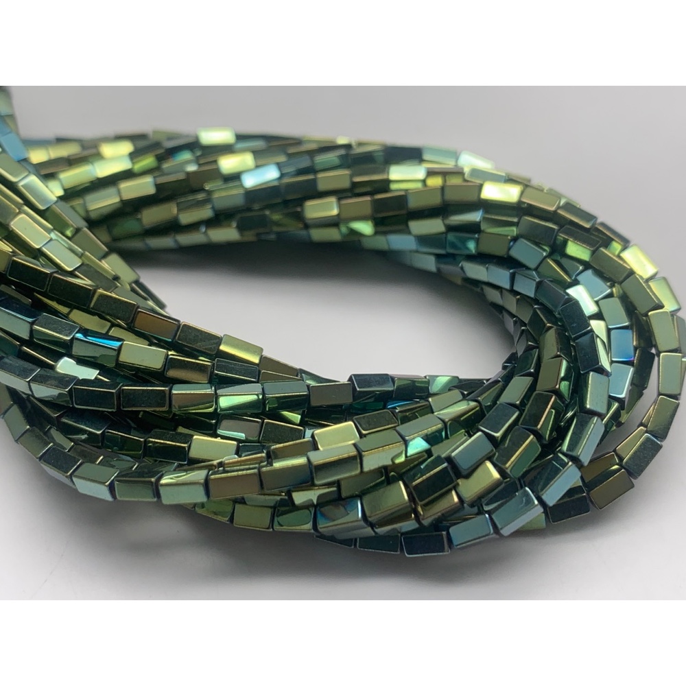 Каменные бусины, Гематит синтетический, цвет зеленый, трубочки прямоугольные, размер 4х2 мм, нить 38 см