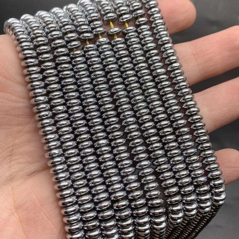 Каменные бусины, Гематит синтетический, серебро, диск, размер 6х3 мм, нить 38 см