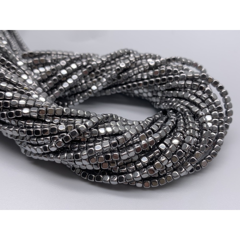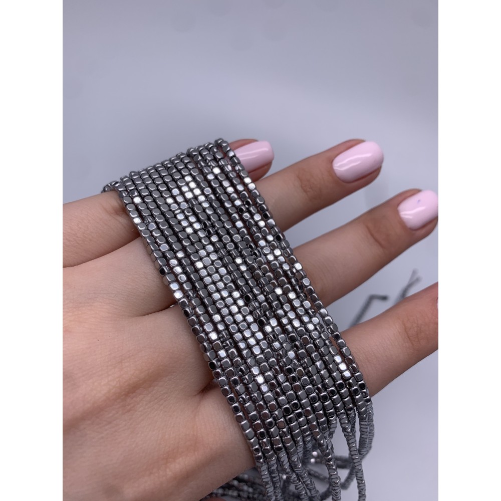 • Каменные бусины, Гематит синтетический, серебро, кубик, размер 2х2 мм, нить 38 см 16869