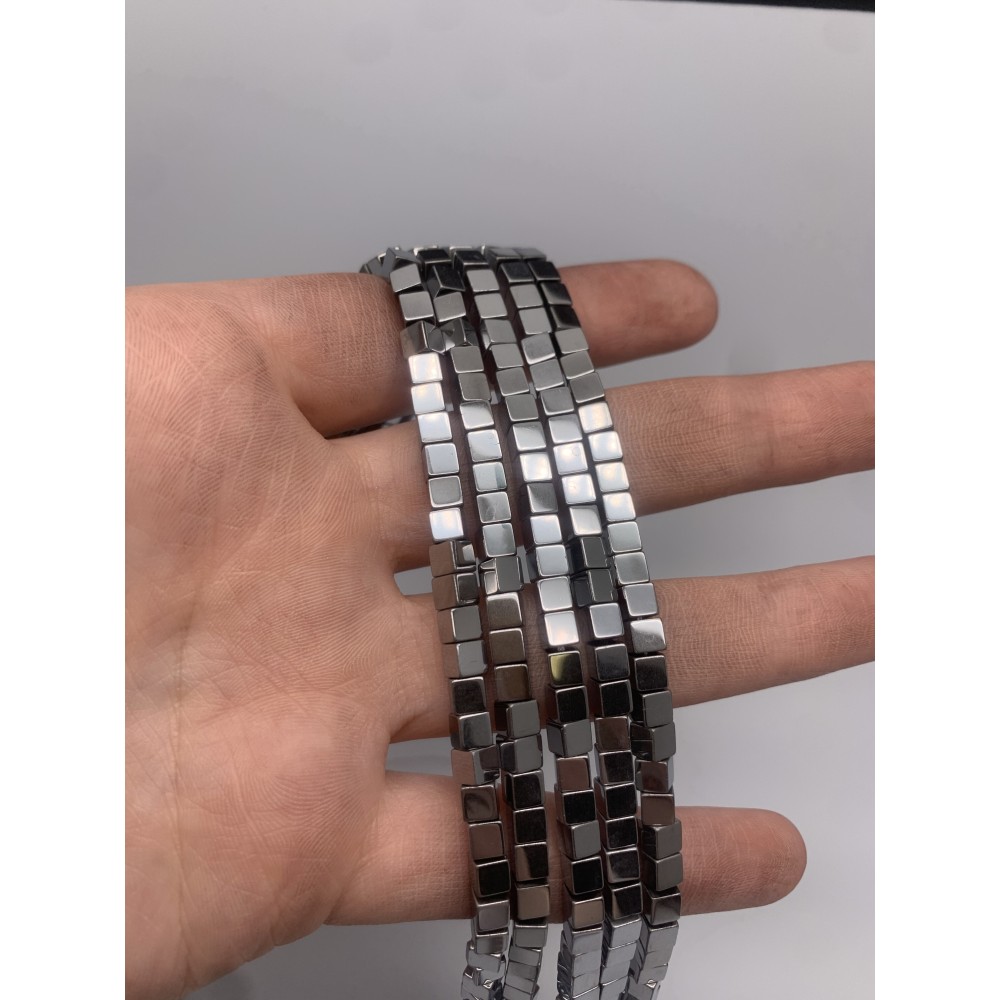 • Каменные бусины, Гематит синтетический, серебро, кубик, размер 4х4 мм, нить 38 см