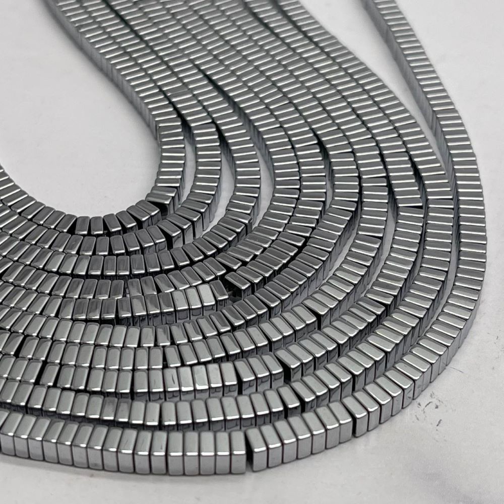 • Каменные бусины, Гематит синтетический, серебро, квадрат, размер 4х2 мм, нить 38 см