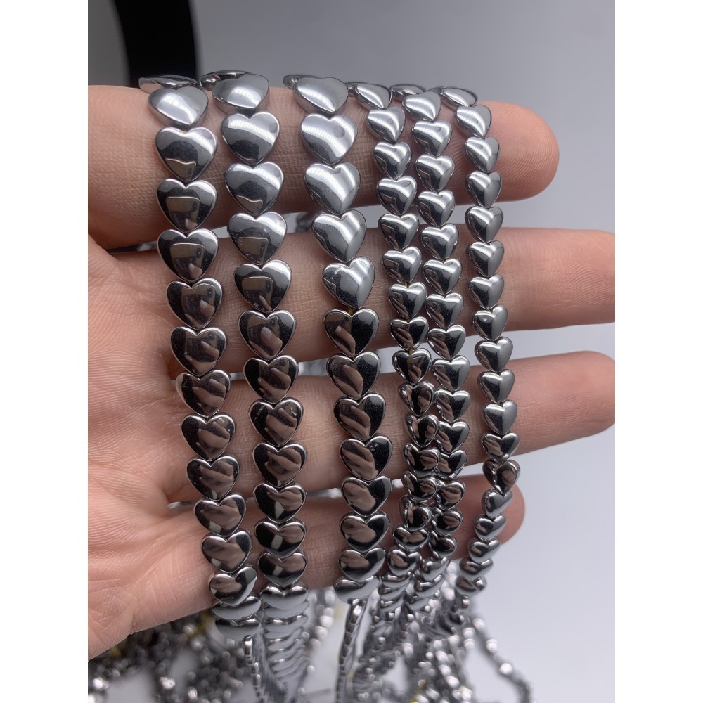 Каменные бусины, Гематит синтетический, серебро, сердечки объемные, 8 мм, длина нити 38 см 0 320 ₽