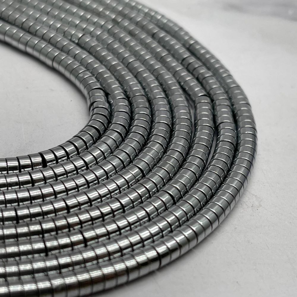 Каменные бусины, Гематит синтетический, серебро, шайба, размер 4х2 мм, нить 38 см