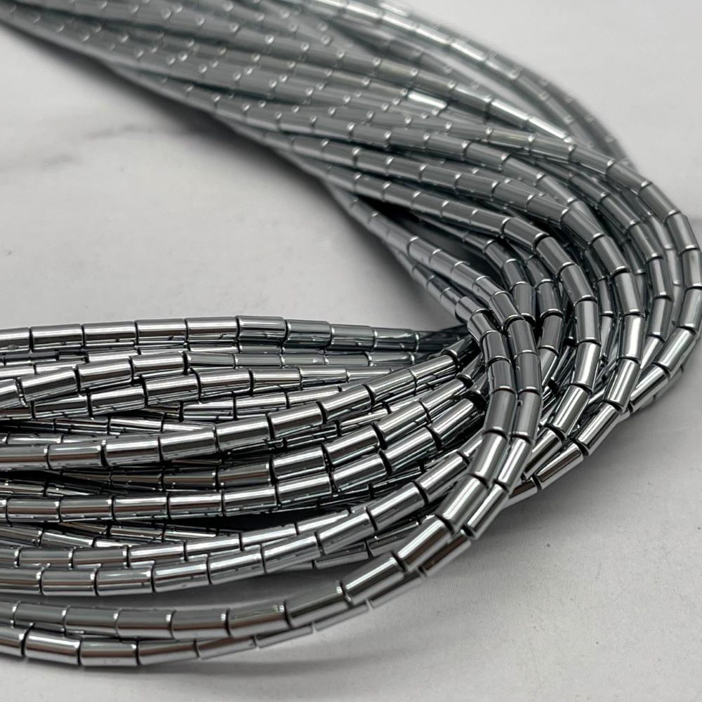 Каменные бусины, Гематит синтетический, серебро, трубочки, размер 4х2 мм, нить 38 см 0 180 ₽