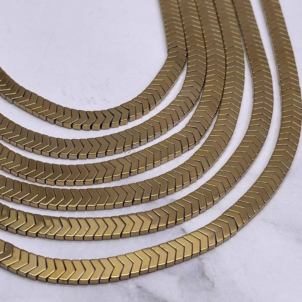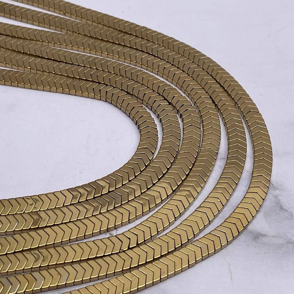 • Каменные бусины, Гематит синтетический, стрелка, золото, размер 6х2 мм, нить 38 см
