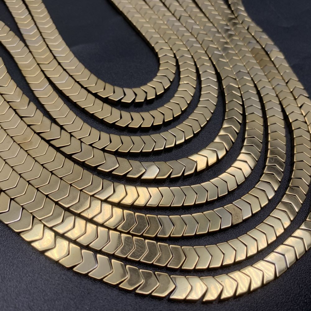 • Каменные бусины, Гематит синтетический, стрелка, золото, размер 6х3 мм, нить 38 см