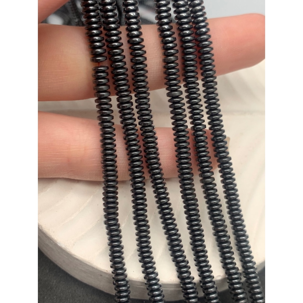 • Каменные бусины, Гематит синтетический, темное серебро, диск, размер 4х1,5 мм, нить 38 см