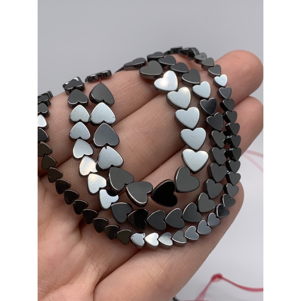 • Каменные бусины, Гематит синтетический, темное серебро, сердечки, 4 мм, длина нити 38 см