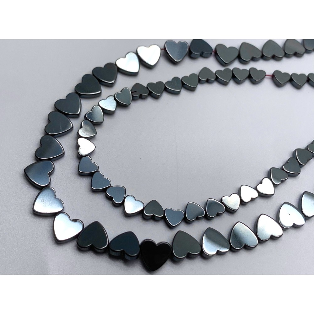 • Каменные бусины, Гематит синтетический, темное серебро, сердечки, 8 мм, длина нити 38 см