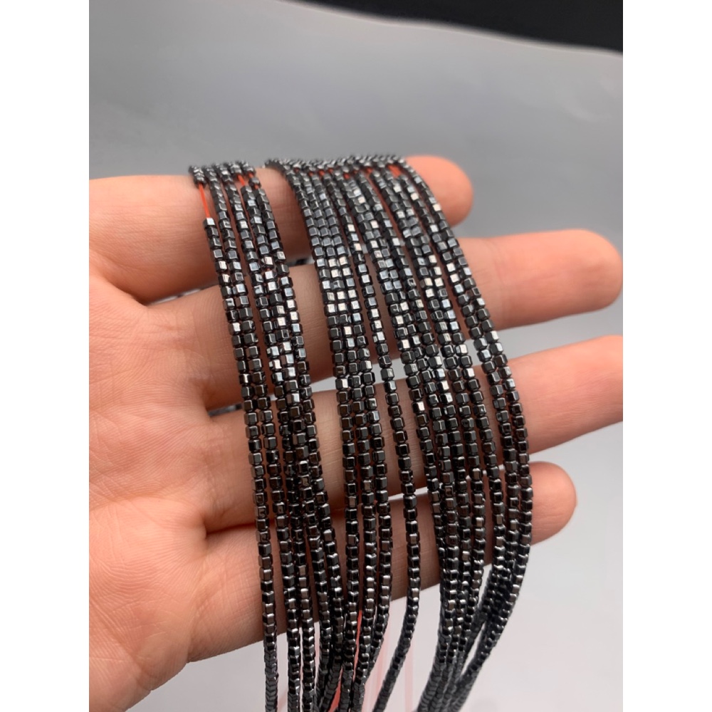 • Каменные бусины, Гематит синтетический, темное серебро, шайба, размер 2х2 мм, нить 38 см