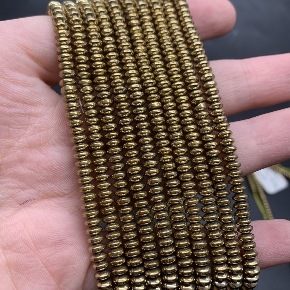 Каменные бусины, Гематит синтетический, золото, диск, размер 4х2 мм, нить 38 см
