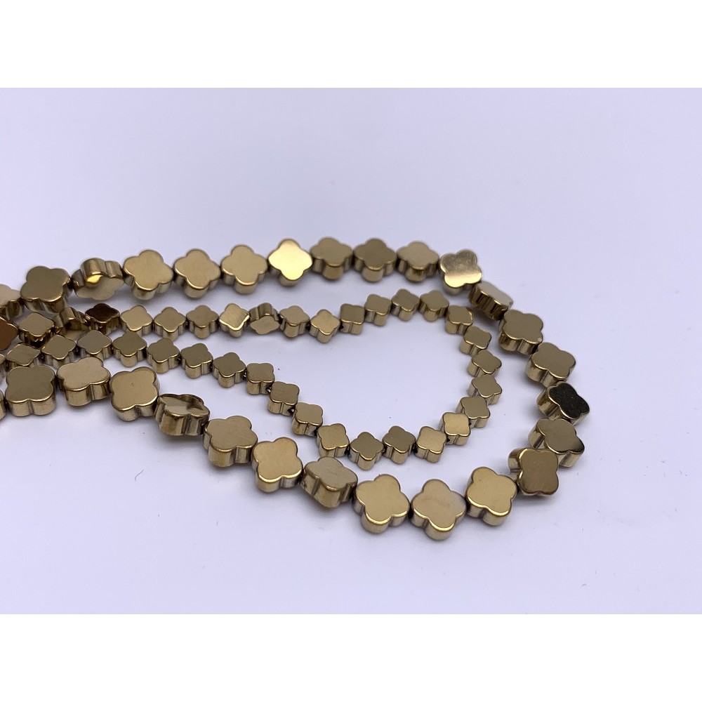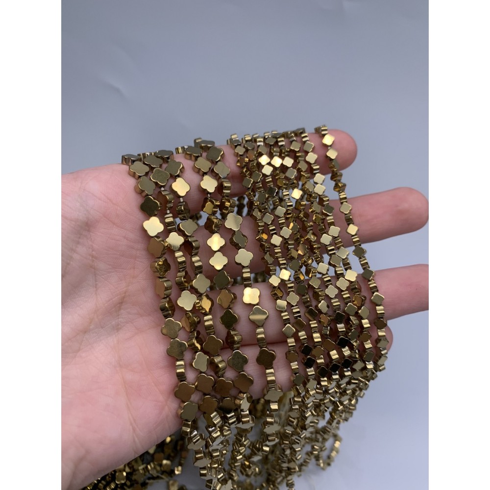 • Каменные бусины, Гематит синтетический, золото, клевер, размер 4 мм, нить 38 см
