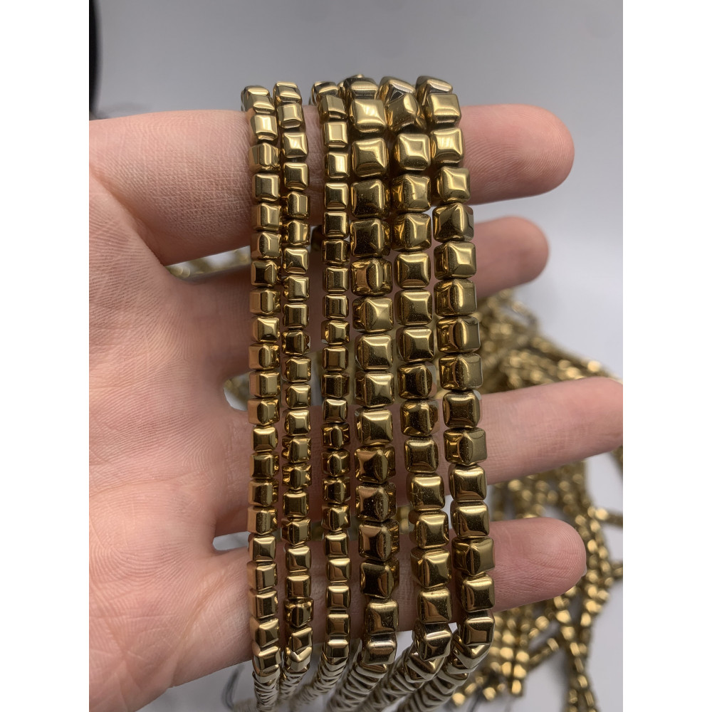 • Каменные бусины, Гематит синтетический, золото, кубик объёмный, размер 4 мм, нить 38 см