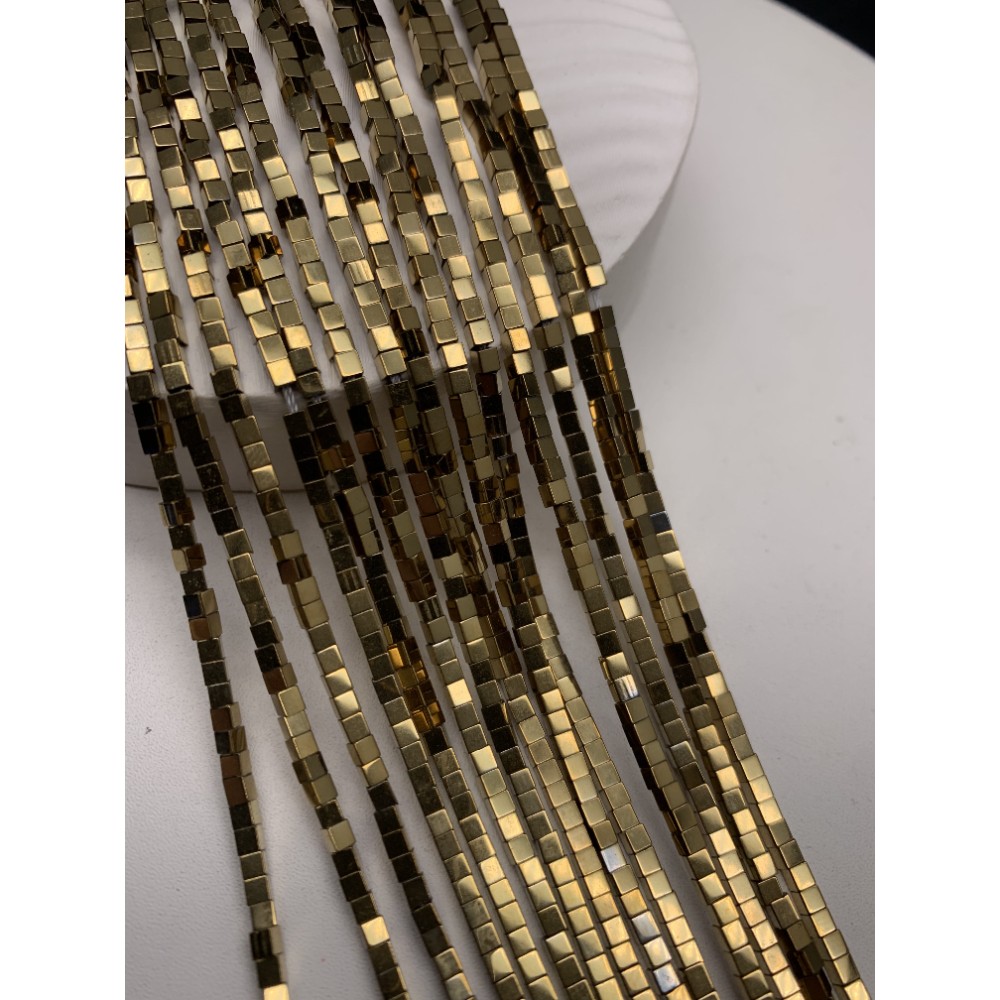 • Каменные бусины, Гематит синтетический, золото, кубик, размер 2х2 мм, нить 38 см