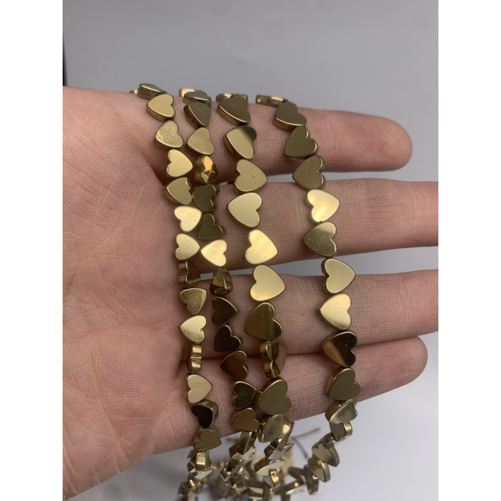 • Каменные бусины, Гематит синтетический, золото, сердечки, 8 мм, длина нити 38 см 16978