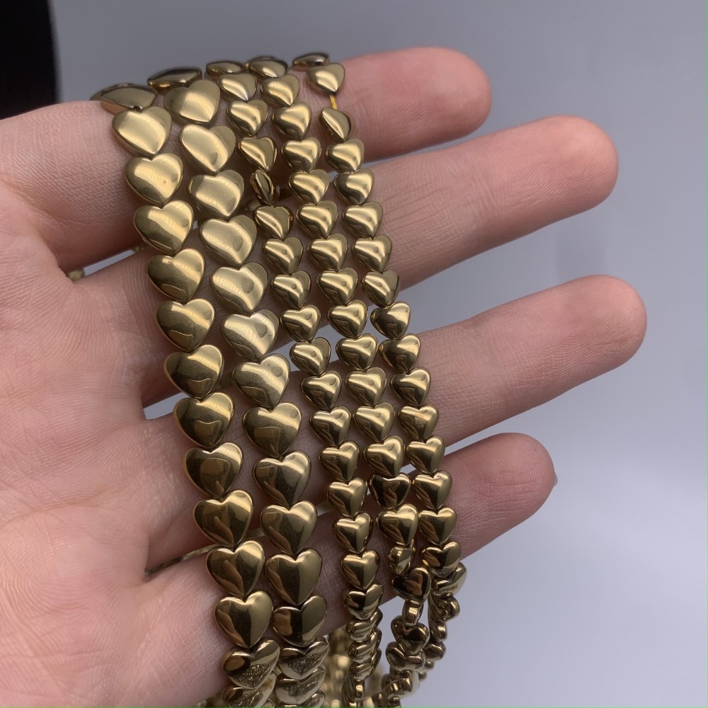 Каменные бусины, Гематит синтетический, золото, сердечки объемные, 6 мм, длина нити 38 см 0 290 ₽