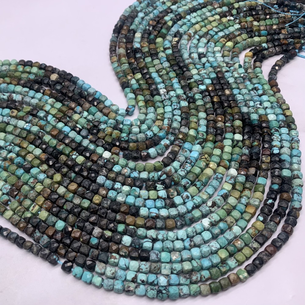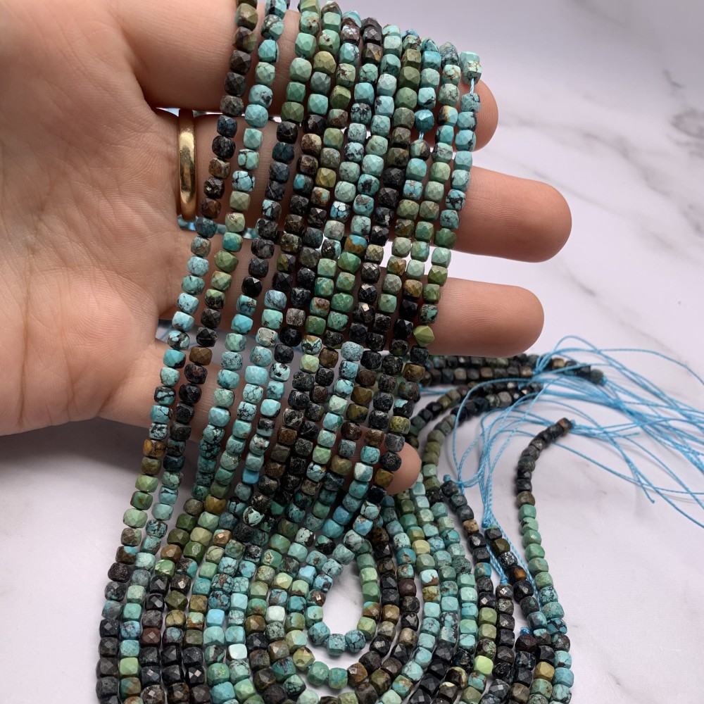 Каменные бусины, Африканская бирюза, кубик, огранка, 3,7х3,7 мм, длина нити 38 см