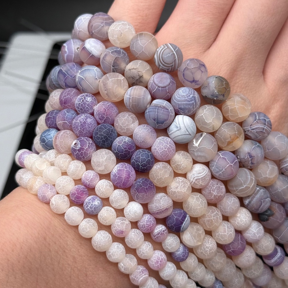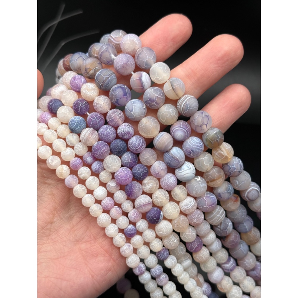 Каменные бусины, Африканский Агат, (Кракле), тонированный, фиолетово-сиреневый, шарик гладкий, 10 мм, длина нити 38 см