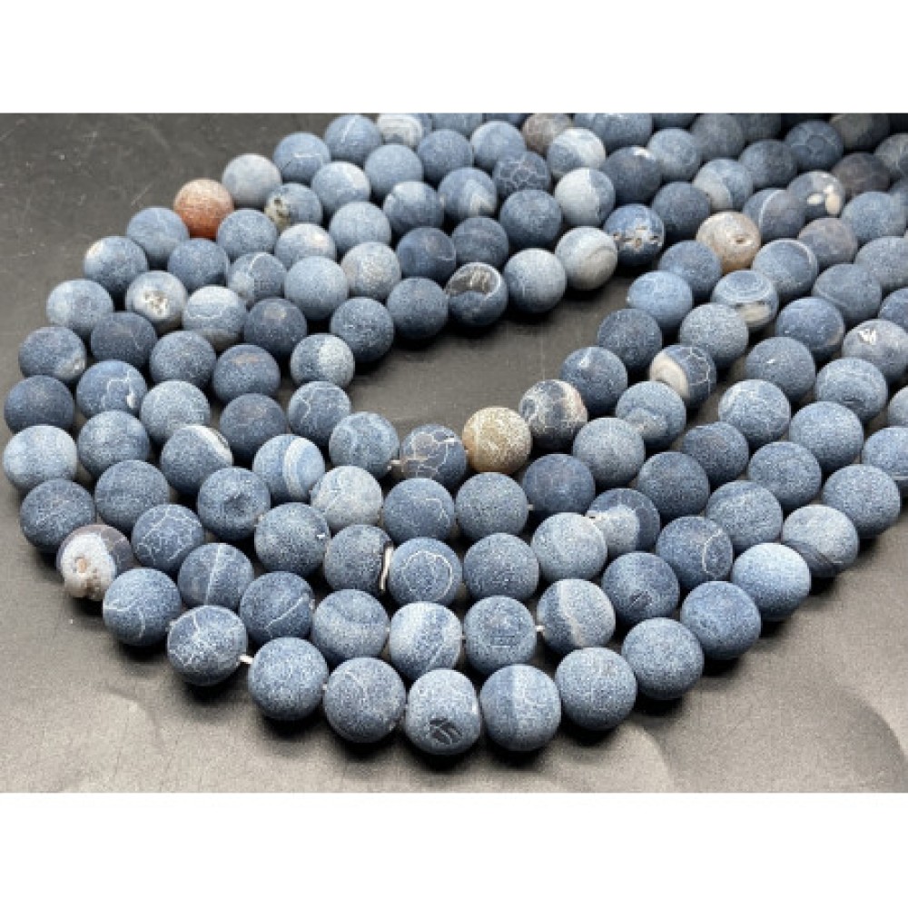 • Каменные бусины, Африканский Агат, (Кракле), тонированный, голубой, шарик гладкий, 8 мм, длина нити 38 см