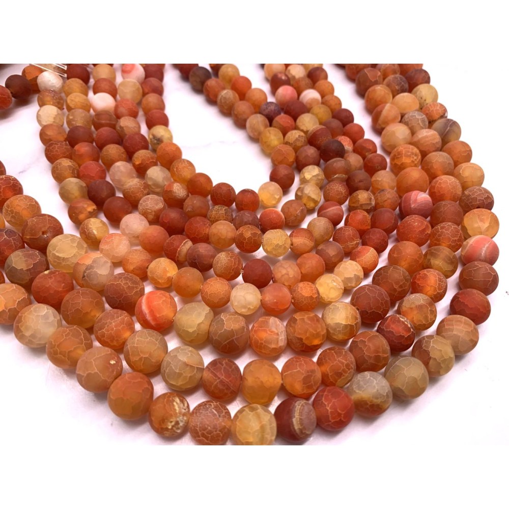 • Каменные бусины, Африканский Агат, (Кракле), тонированный, ярко-оранжевый, шарик гладкий, 8 мм, длина нити 38 см
