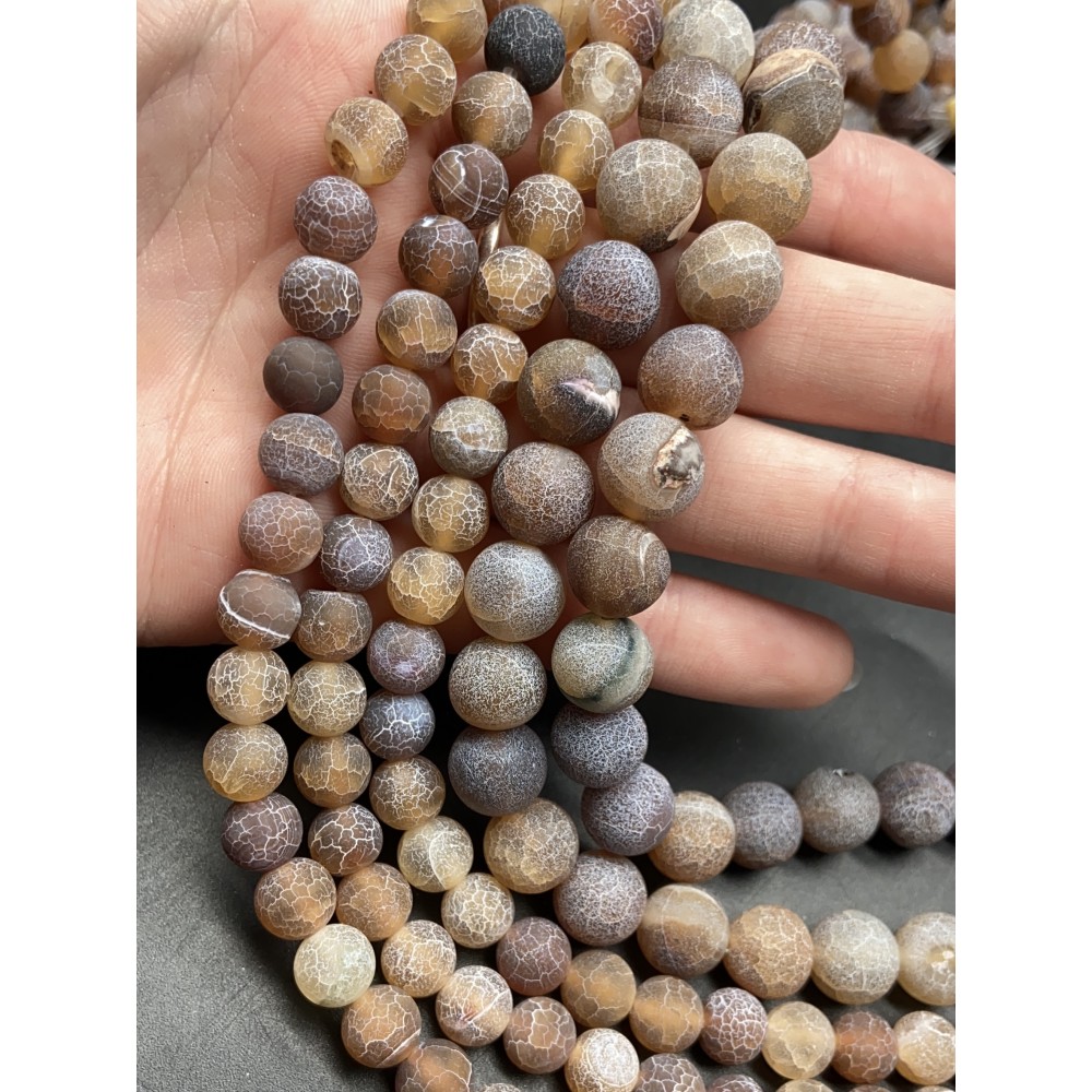 Каменные бусины, Африканский Агат, (Кракле), тонированный, коричневый, шарик, гладкий, 10 мм, длина нити 38 см