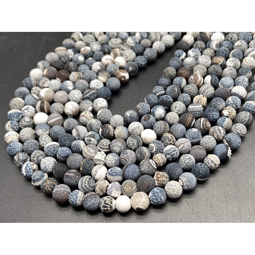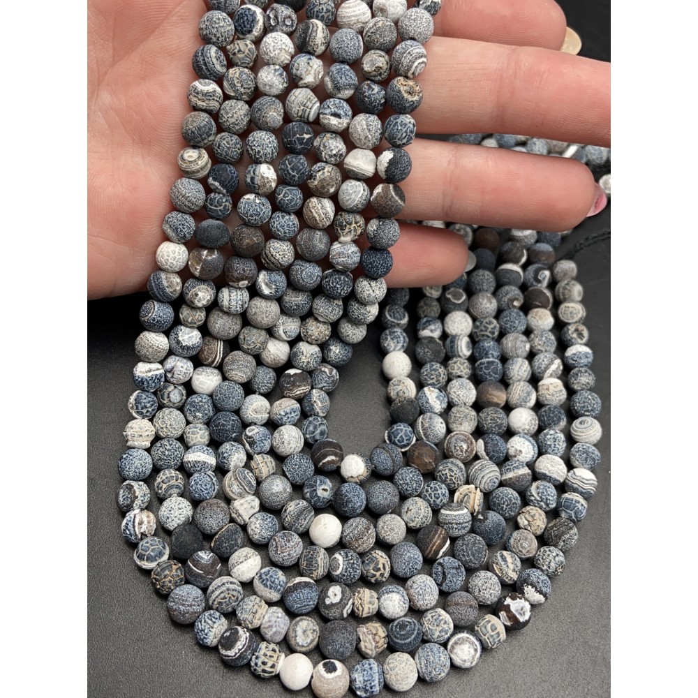 • Каменные бусины, Африканский Агат, (Кракле), тонированный, серо-голубой, шарик гладкий, 6 мм, длина нити 38 см 14483