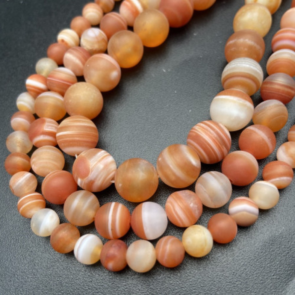 Каменные бусины, Агат Ботсвана, матовый, персиковый, шарик гладкий, 14 мм, длина нити 38 см