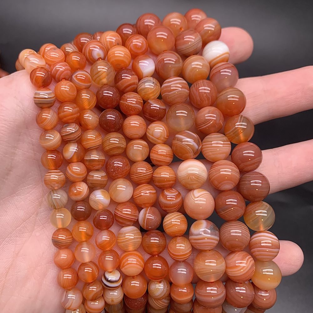 • Каменные бусины, Агат Ботсвана персиковый, люкс, шарик гладкий, размер 8 мм, нить 38 см 16378