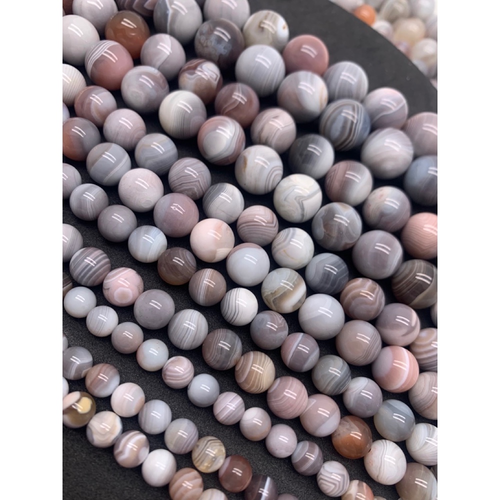 Каменные бусины, Агат Ботсвана, серо-розовый, шарик гладкий, размер 10 мм, нить 19 см