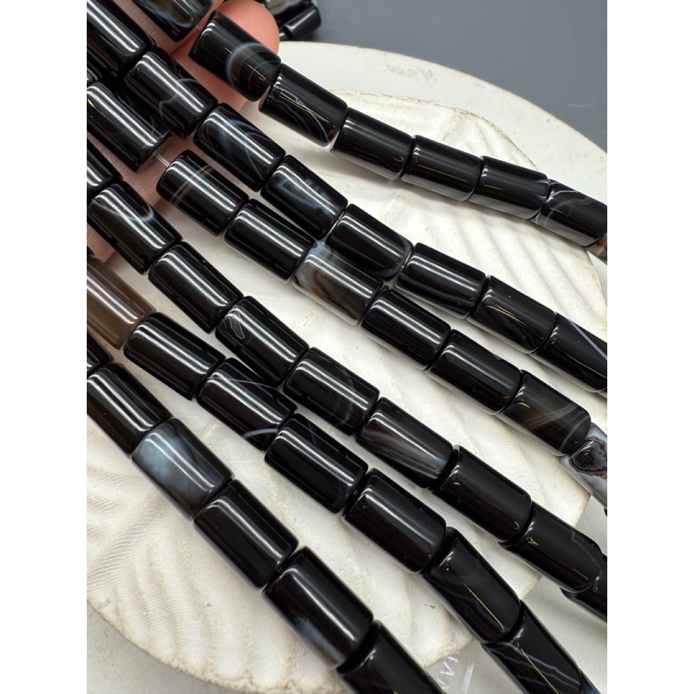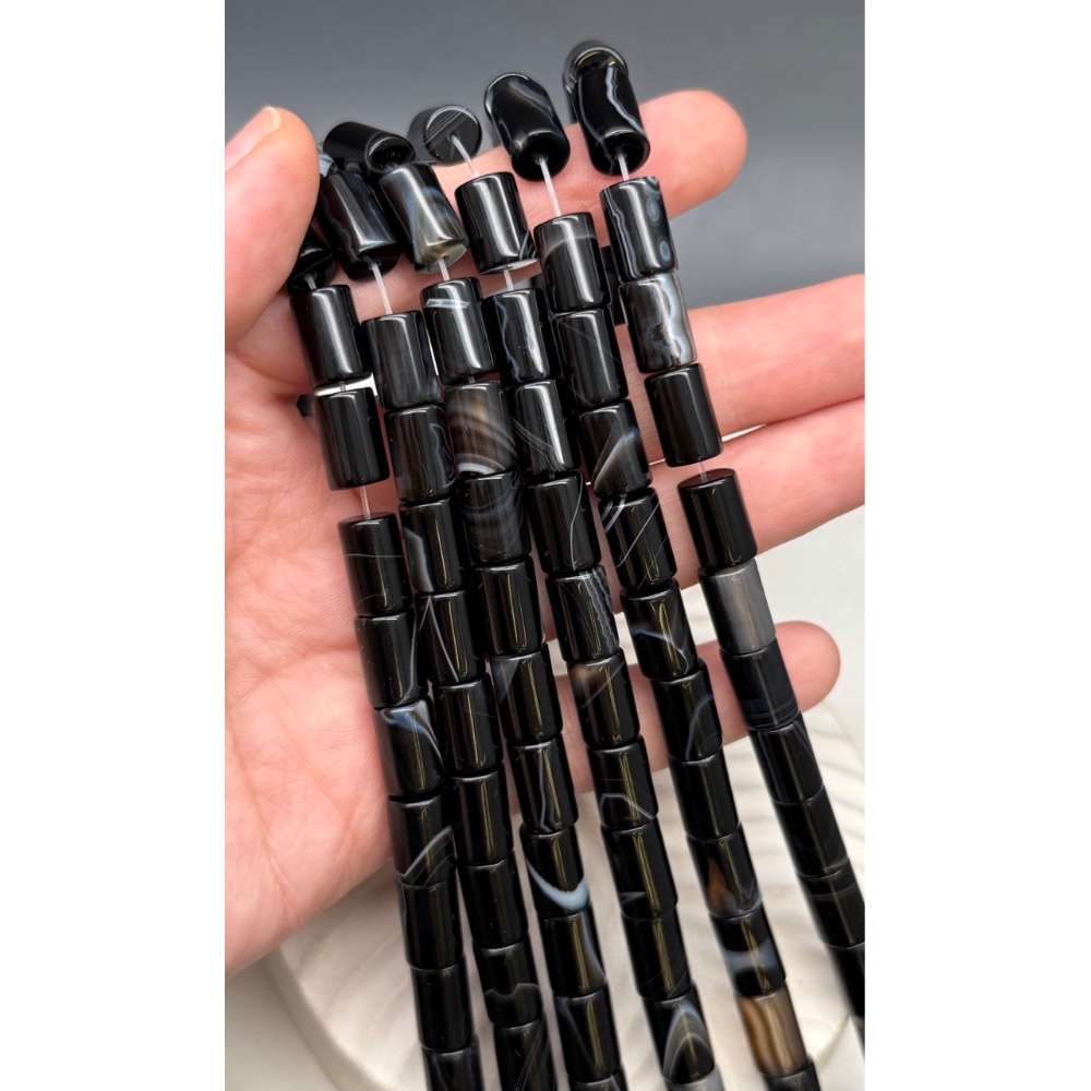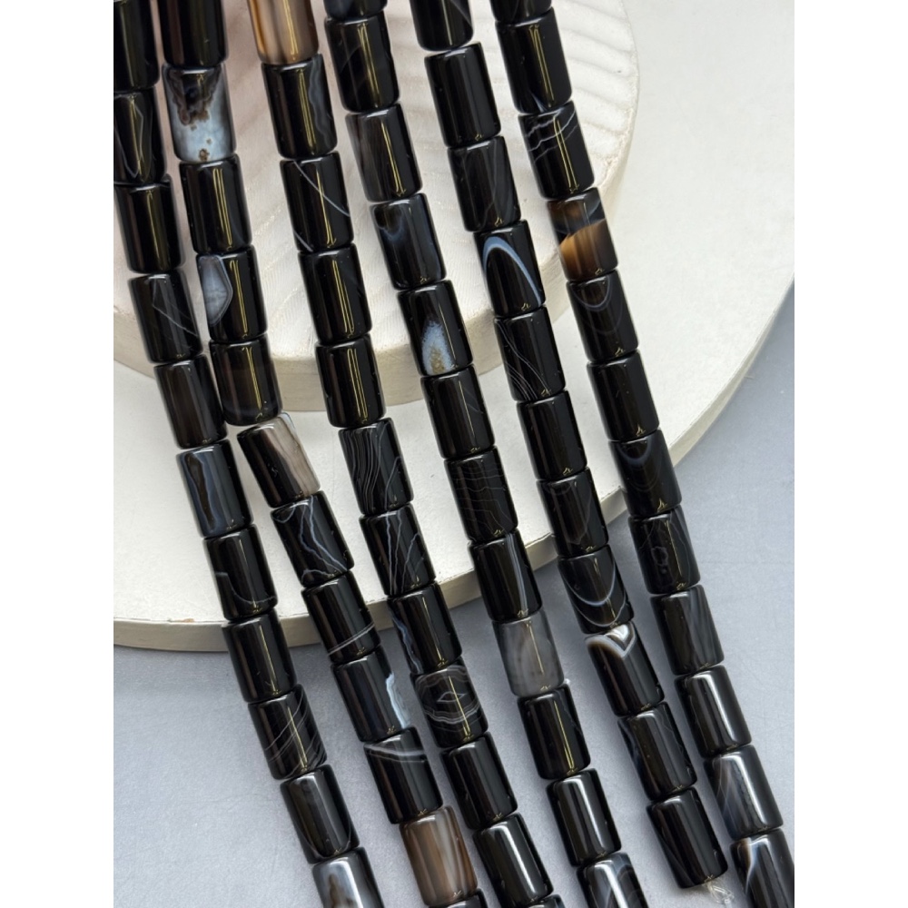 Каменные бусины, Агат черный, с полосками, люкс, трубочки (столбики), 8х12 мм, длина нити 38 см