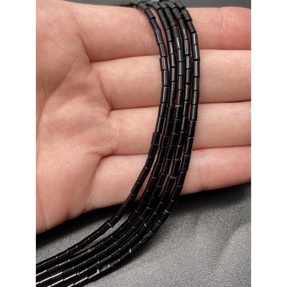 Каменные бусины, Агат, черный, трубочки, 4х2 мм, длина нити 38 см 0 520 ₽