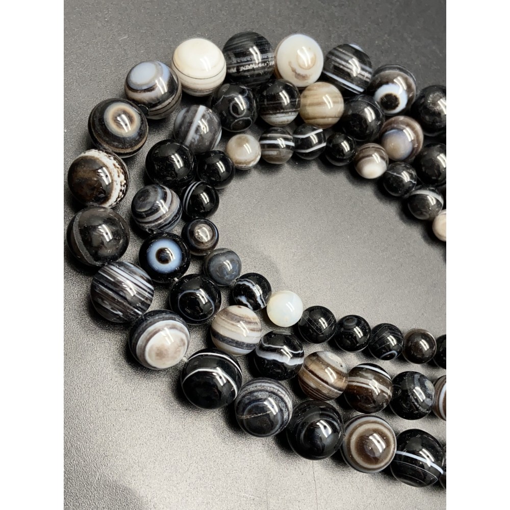 Каменные бусины, Агат Чёрный Глазковый, шарик гладкий, 12 мм, длина нити 38 см
